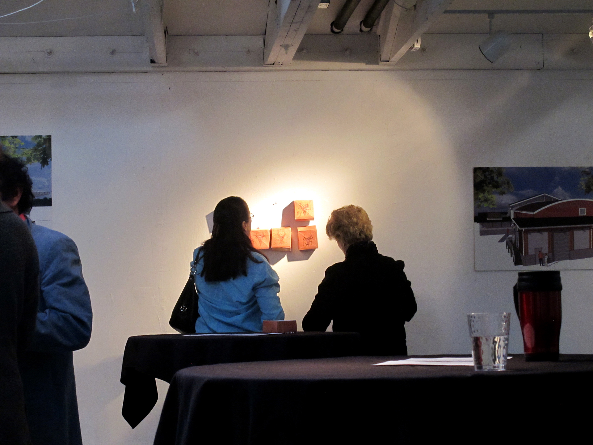 The piece was created with artists in mind, creating an origami brick so that the donors could interact not only with the brick but with each other in creating the piece. That way there was some incentive at the event to start piecing the bricks together as individuals/groups began to make donations. In addition to the folding, my goal was to have the main sheet act separately and convey the information clearly if one wasn't interested in partaking in the folding.